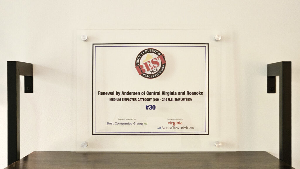 Renewal by Andersen of Central Virginia and Roanoke is proud to announce that we have been named to the 2026 Best Places to Work in Virginia list by Virginia Business. This honor, awarded in the mid‑size company category, recognizes organizations across the Commonwealth that demonstrate exceptional workplace culture, employee engagement, and commitment to their teams. Renewal by Andersen of Central Virginia and Roanoke was named among the Best Places to Work previously in 2025, 2023, and 2021.